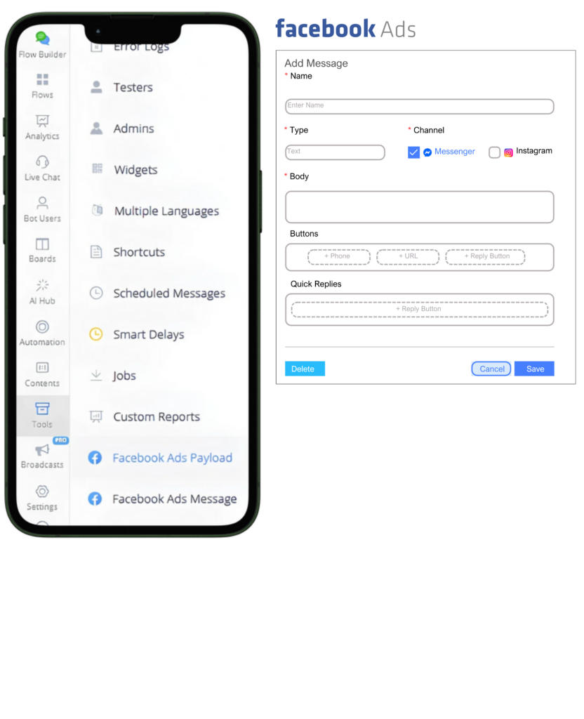 - Create chat flows easily.