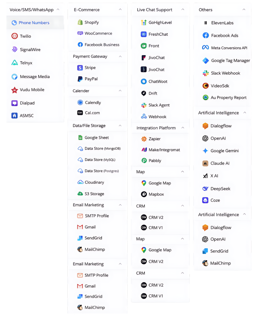 - Link CRM, email, and live chat.