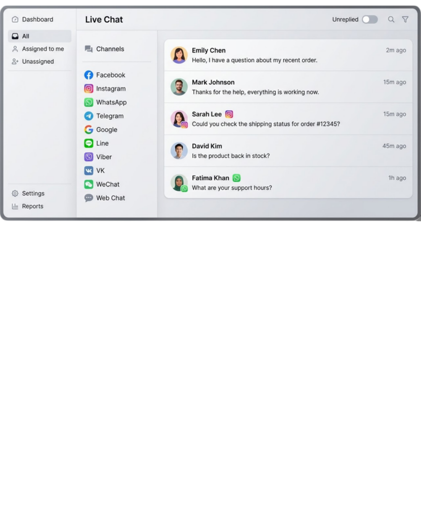 - Manages chats across all channels